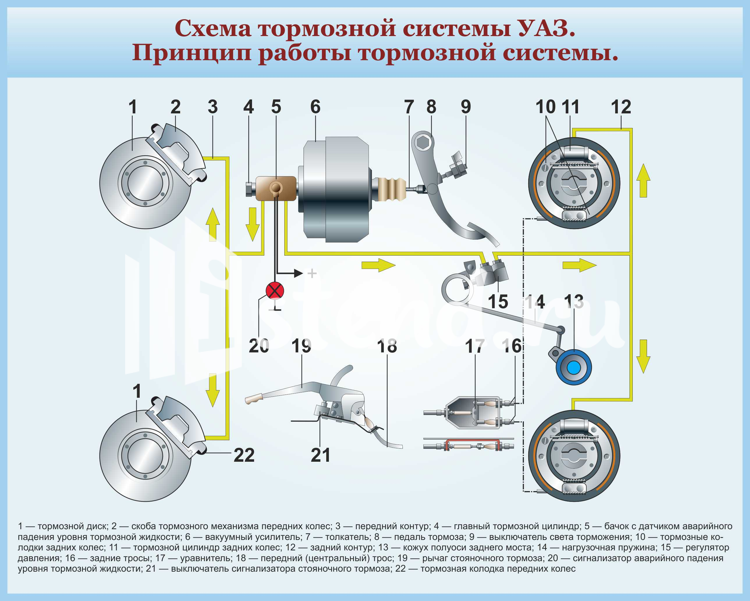 Схема тормозной системы УАЗ 1000х800мм