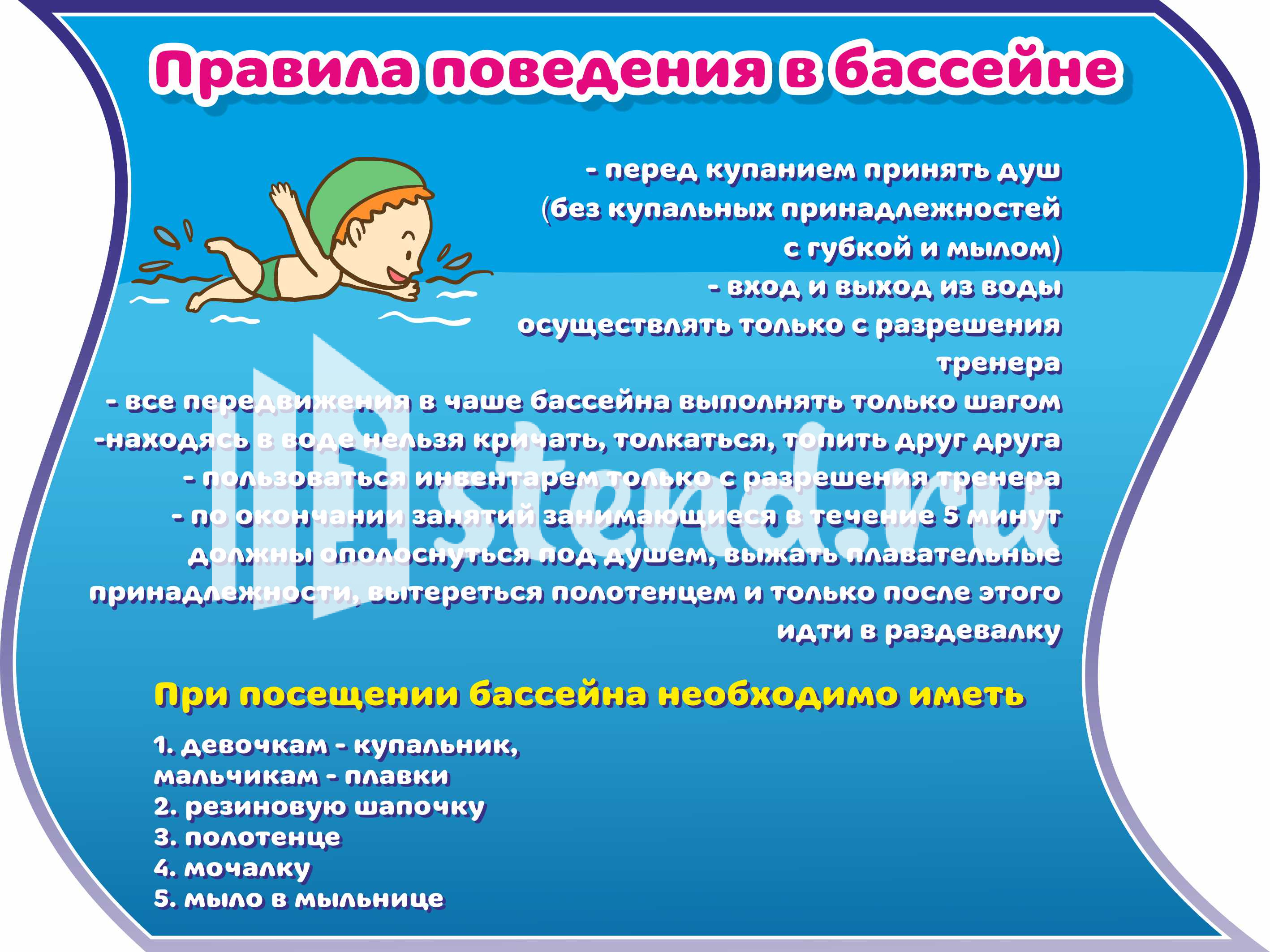 Оформление Детского бассейна Правила поведения в бассейне 1000х750мм