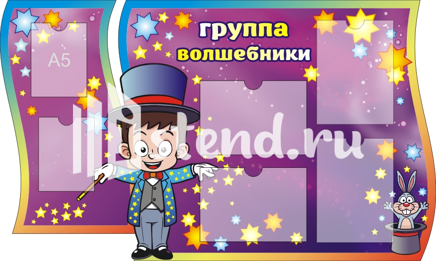 Стенд детский сад группа Волшебники 1250х770ммСтенд для детского сада "Уголок логопеда", "наше творчество", "Наша группа"