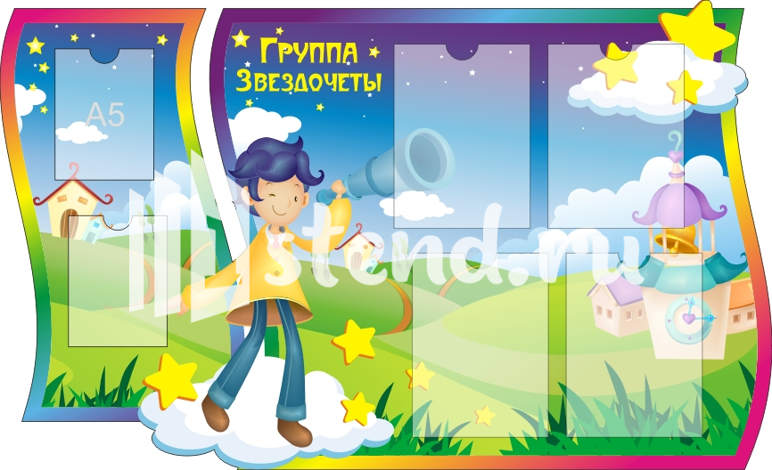 Стенды группа Звездочеты 1250х770мм Стенд для детского сада "Уголок логопеда", "наше творчество", "Наша группа"