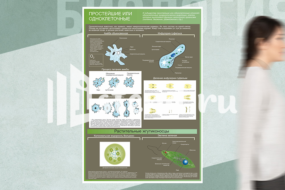 Оформление кабинета Биологии Простейшие одноклеточные 1000х1700мм