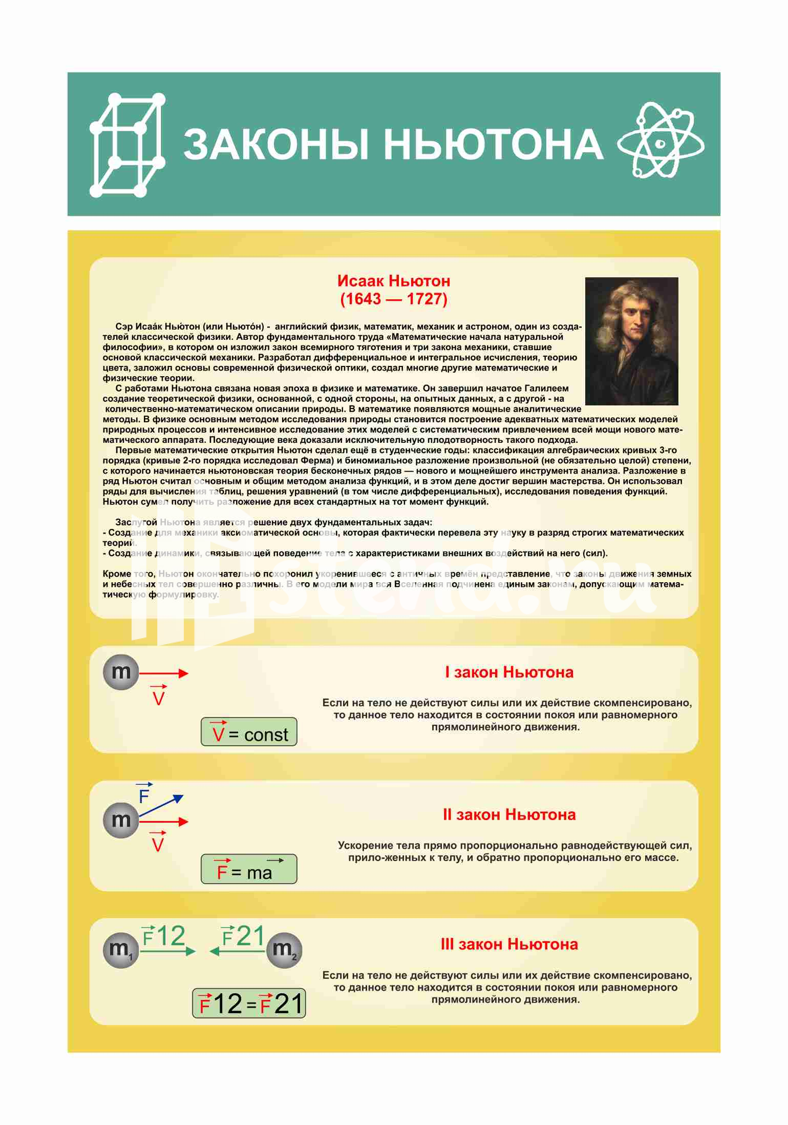 Оформление кабинета Физики Законы Ньютона 600х900мм