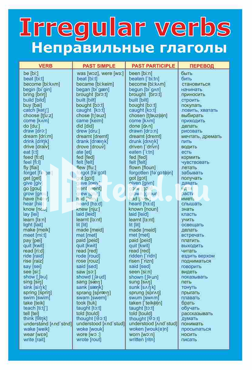 Оформление кабинета Иностранных языков Неправильные глаголы 600х900мм
