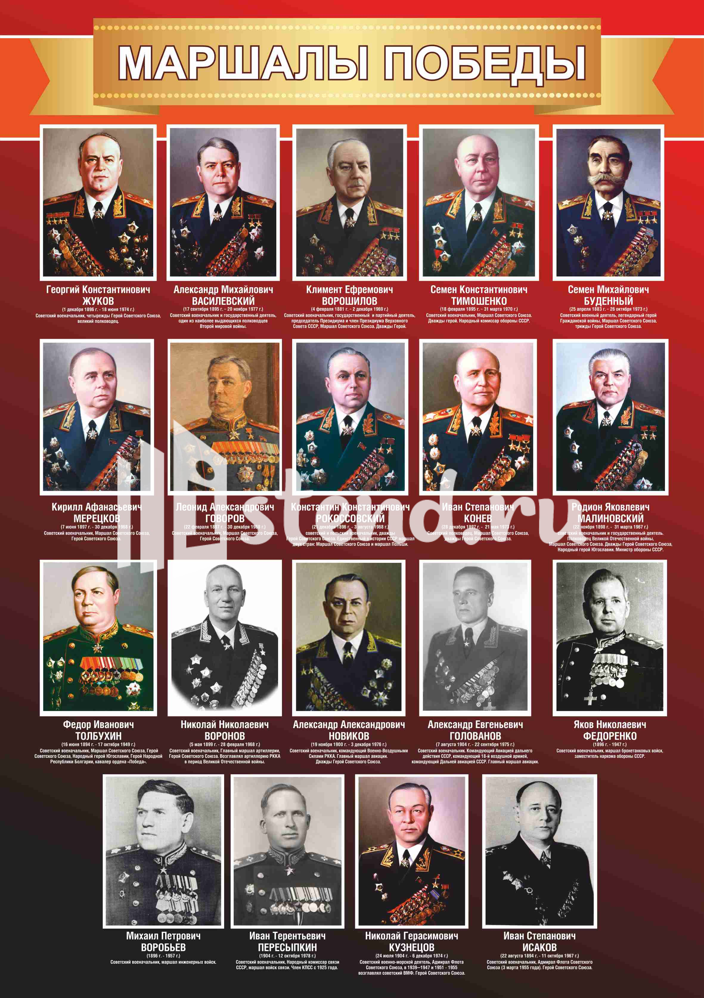 Оформление кабинета Истории Маршалы победы 1200х1700мм