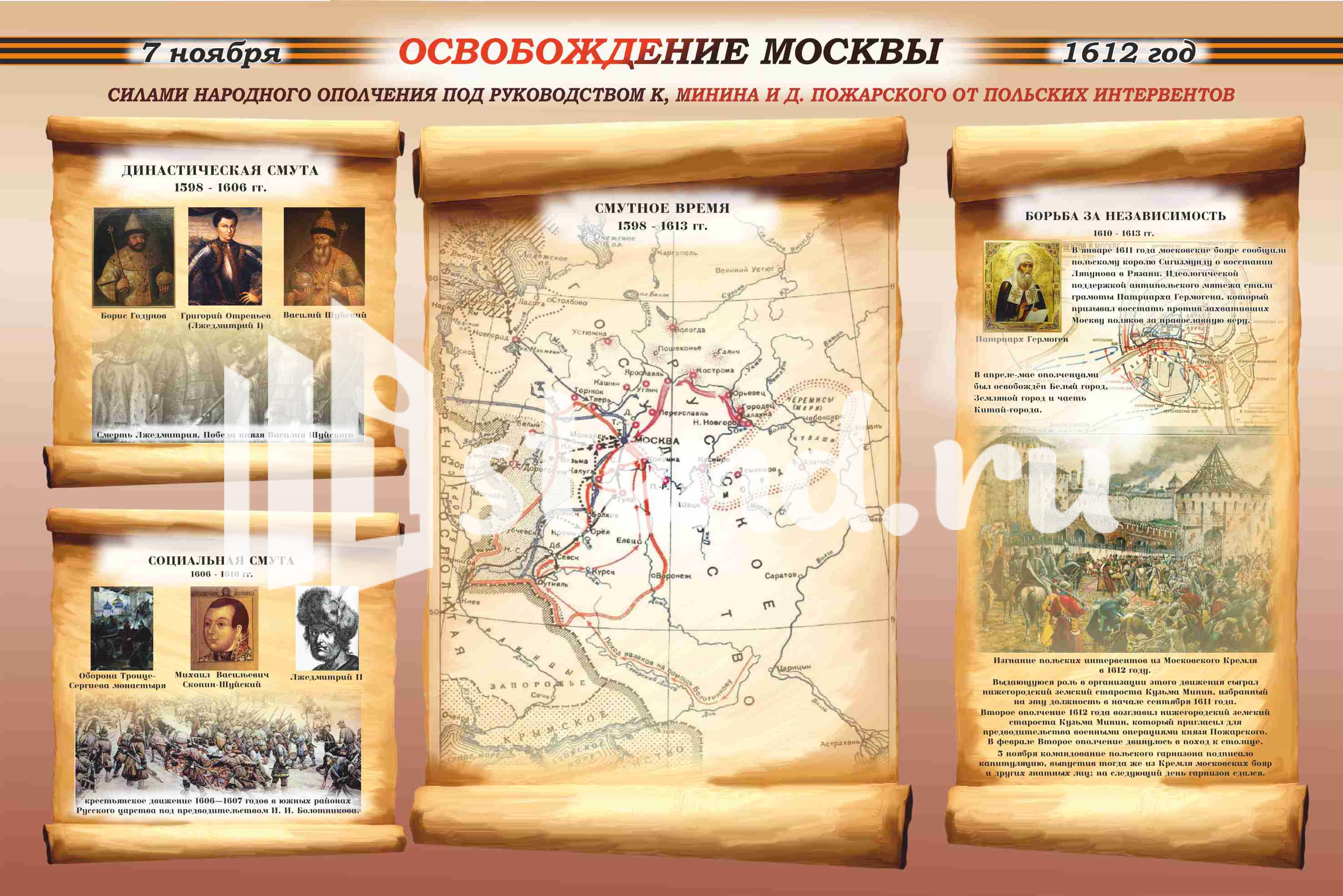 Оформление кабинета Истории Освобождение Москвы 1500х1000мм