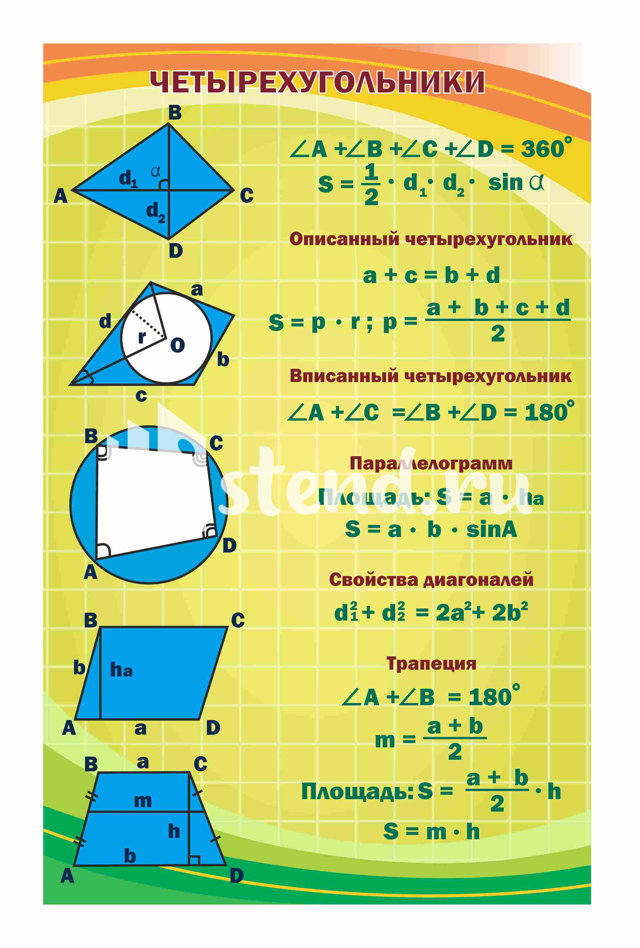 Оформление кабинета Математики Четырехугольники 700х1100мм