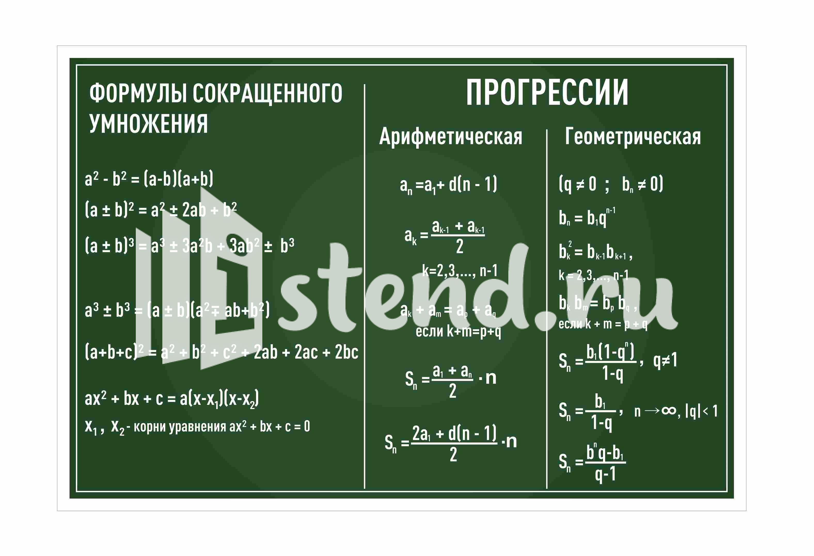 Оформление кабинета Математики Формулы сокращенного умножения прогрессии 1100х700мм