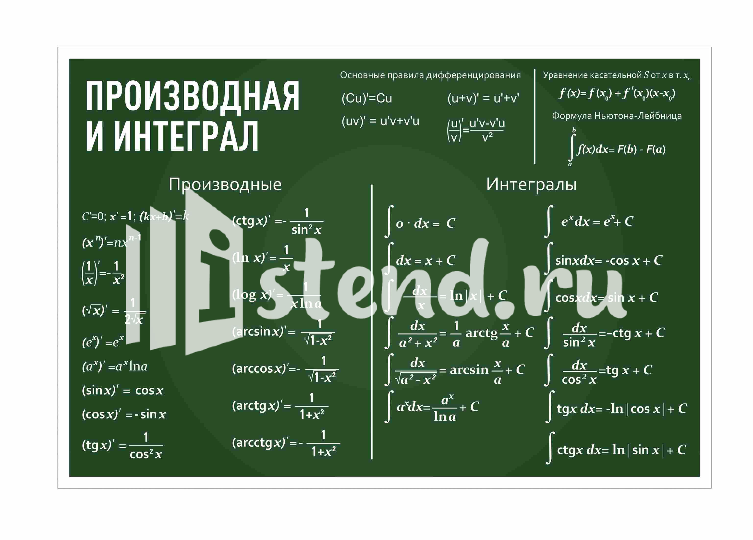 Оформление кабинета Математики Производная и интеграл 1500х670мм