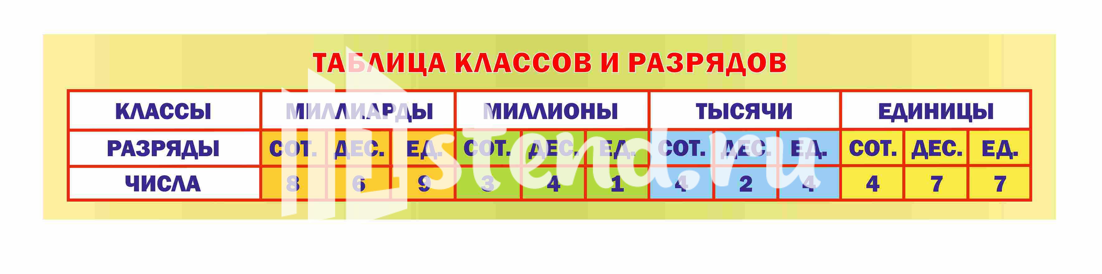 Оформление кабинета Математики Таблица классов и разрядов 3000х550мм