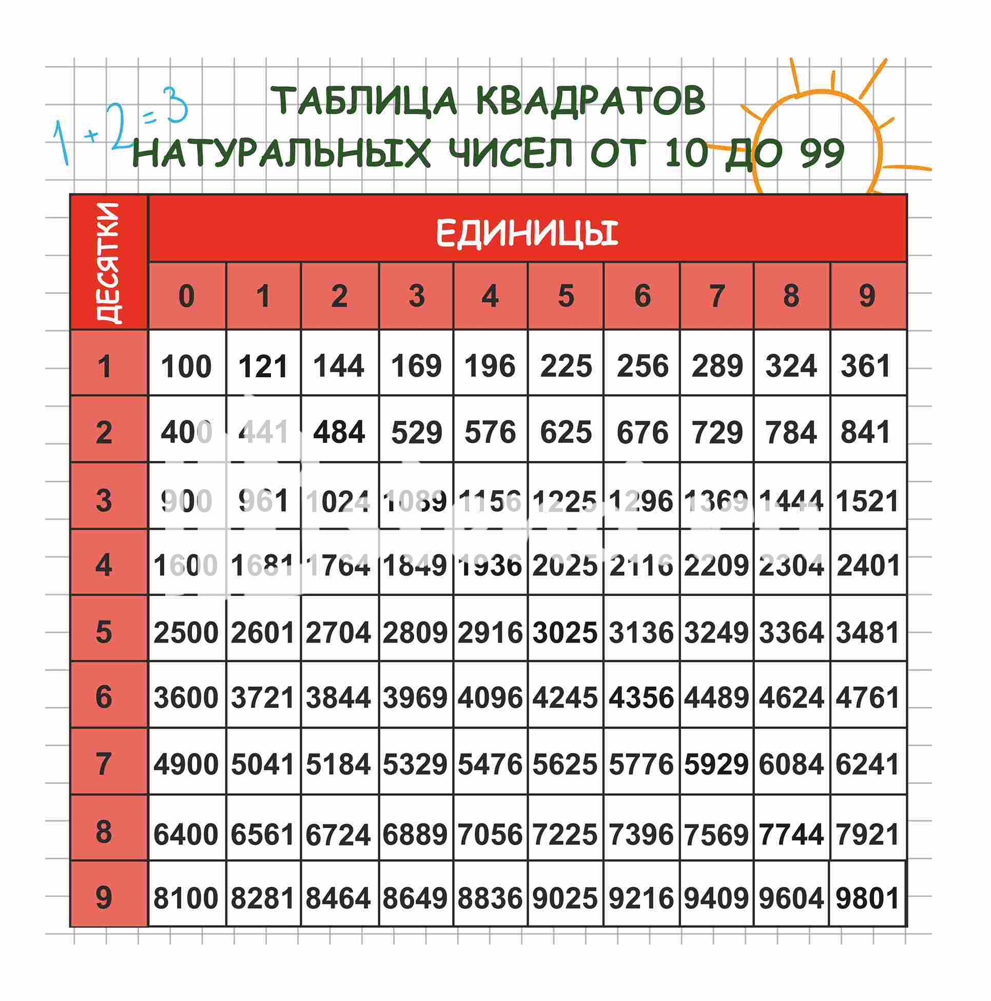 Оформление кабинета Математики Таблица квадратов натуральных чисел 600х600мм