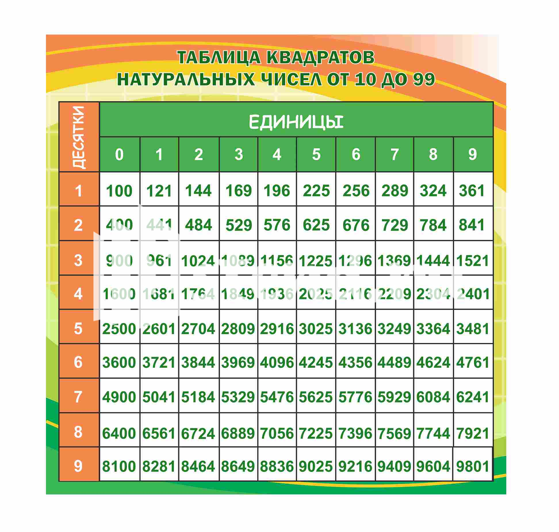 Оформление кабинета Математики Таблица квадратов натуральных чисел 600х600мм