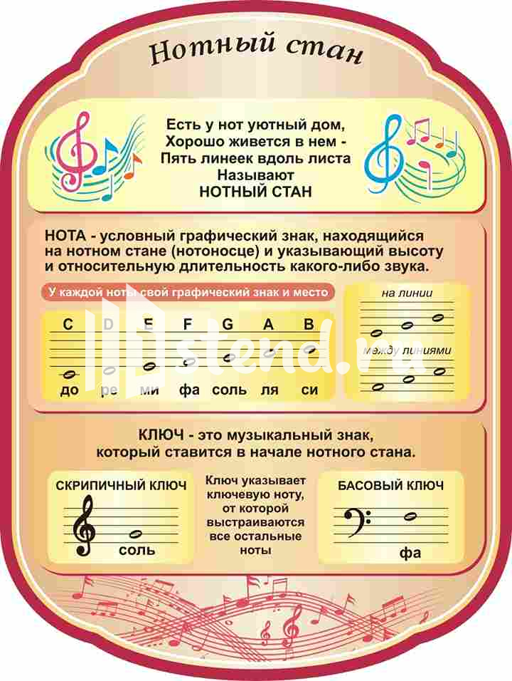 Оформление кабинета Музыки Нотный стан 1500х900мм Стенд для школы "Уголок безопасности дорожного движения", "Расписание уроков", "наш класс", "лучшие ученики", "наши достижения"