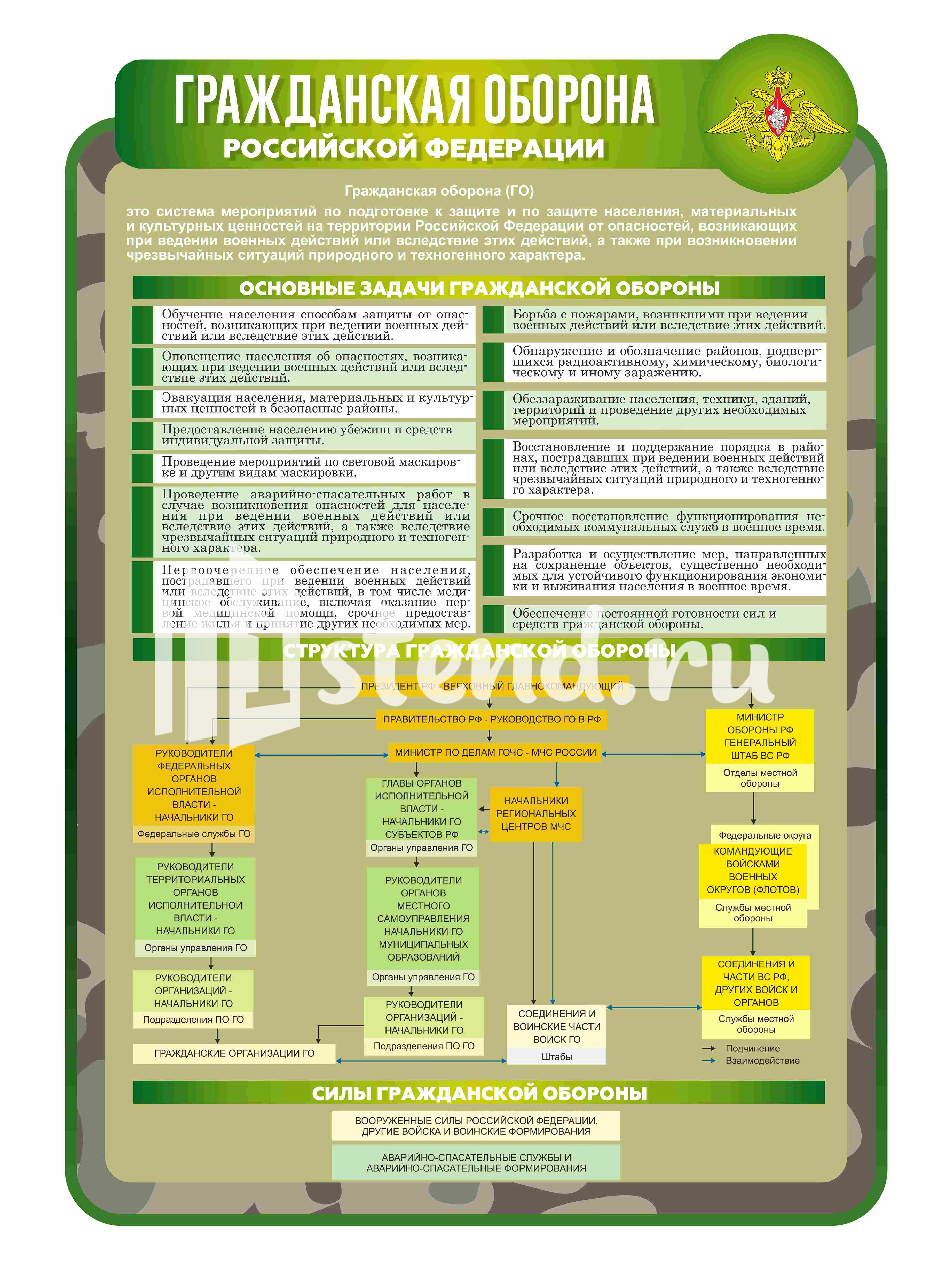 Оформление кабинета ОБЖ Гражданская оборона 760х1100мм