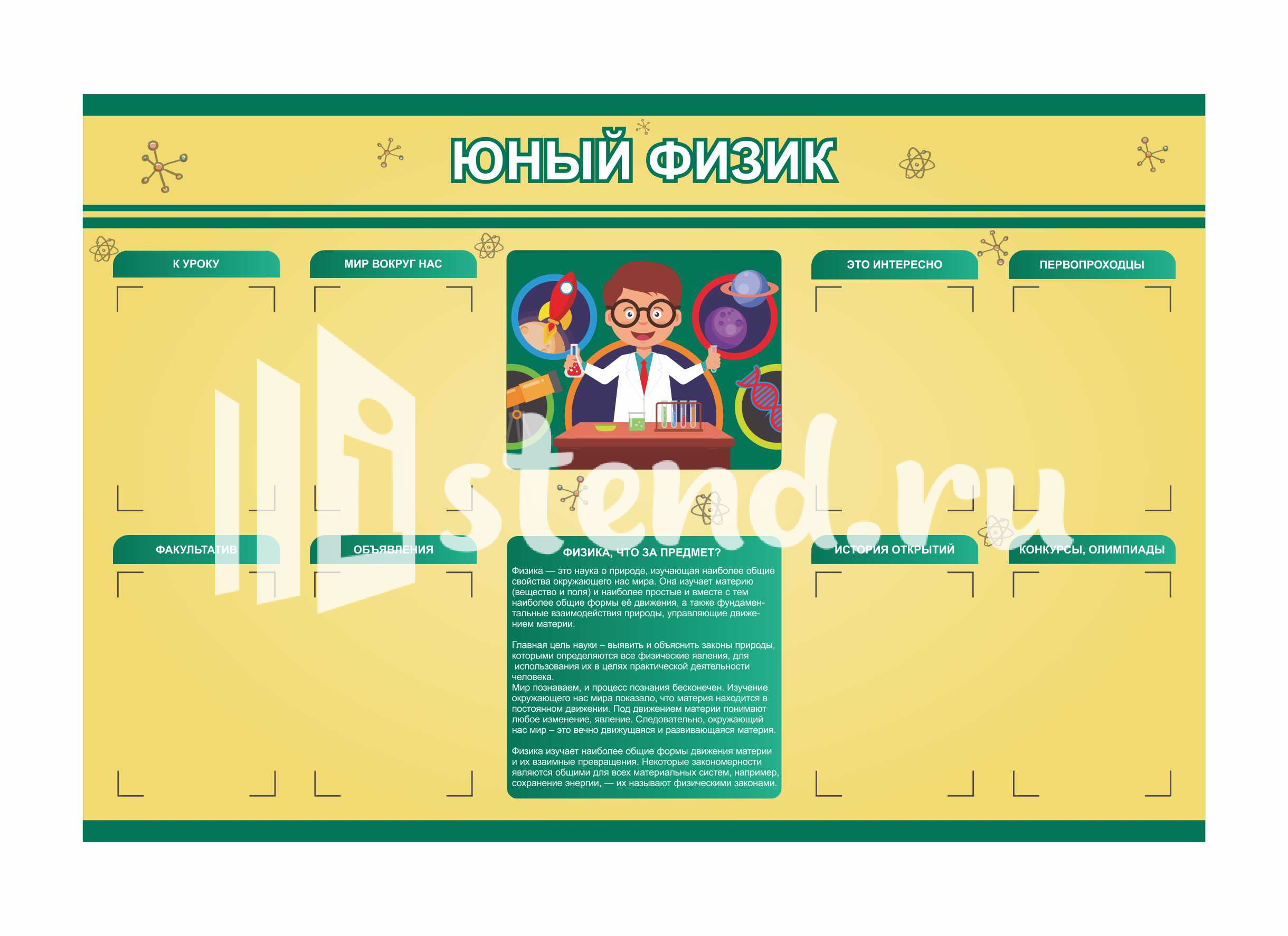 Стенд для кабинета Физики Юный физик 1500х1000мм