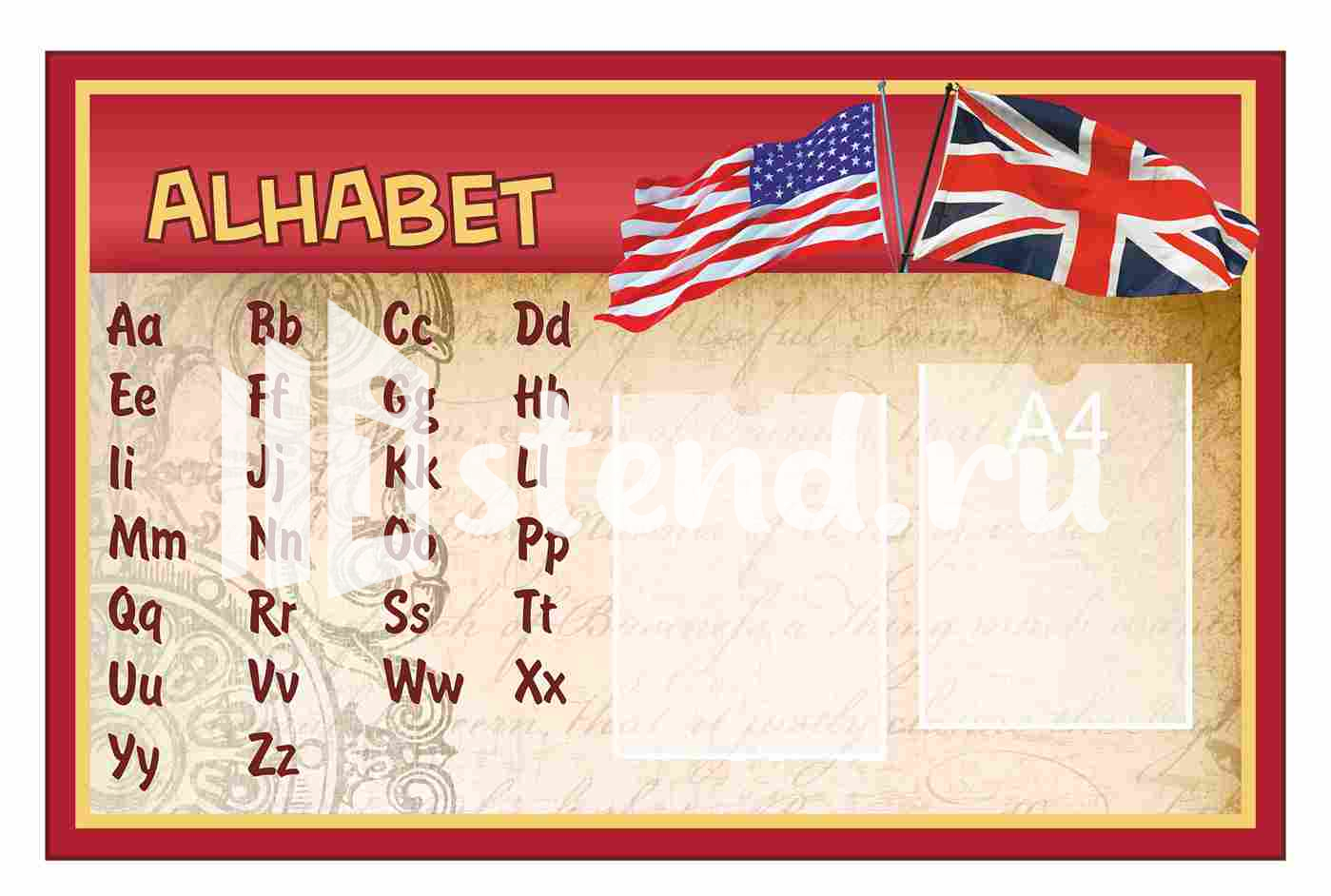 Стенд для кабинета Иностранныx языков 1000х650мм