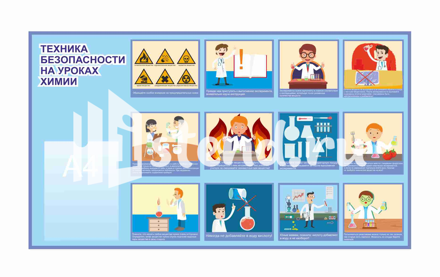 Стенд для кабинета Химии Техника безопасности 1150х650мм