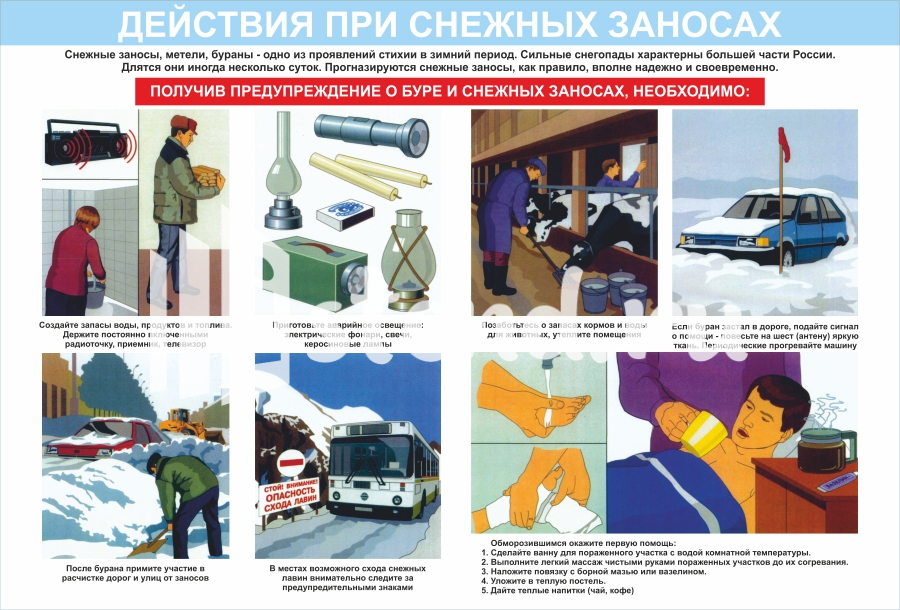 Тематический стенд Действия при снежных заносах 900х610мм