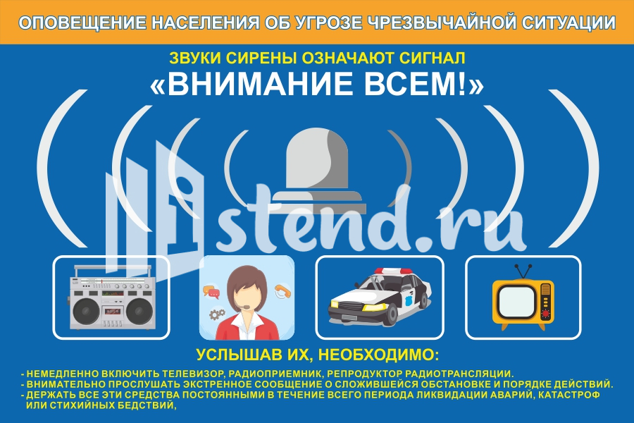 Тематический стенд Оповещение населения об угрозе 900х600ммСтенд для школы "Уголок безопасности дорожного движения", "Расписание уроков", "наш класс", "лучшие ученики", "наши достижения"